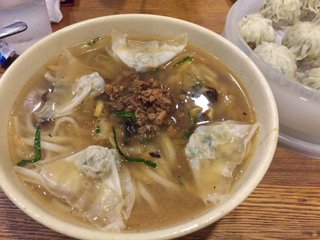薄めの透き通った皮の中には豚肉にニラなどがたっぷり入ってる! 肉汁ジュワ〜